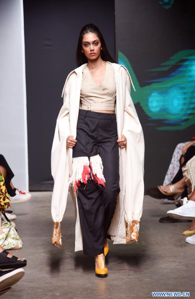 COLOMBO, 3 diciembre, 2023 (Xinhua) -- Imagen del 2 de diciembre de 2023 de un modelo presentando una creación durante la Semana de la Moda Mercedes Benz, en Colombo, Sri Lanka. (Xinhua/Gayan Sameera)