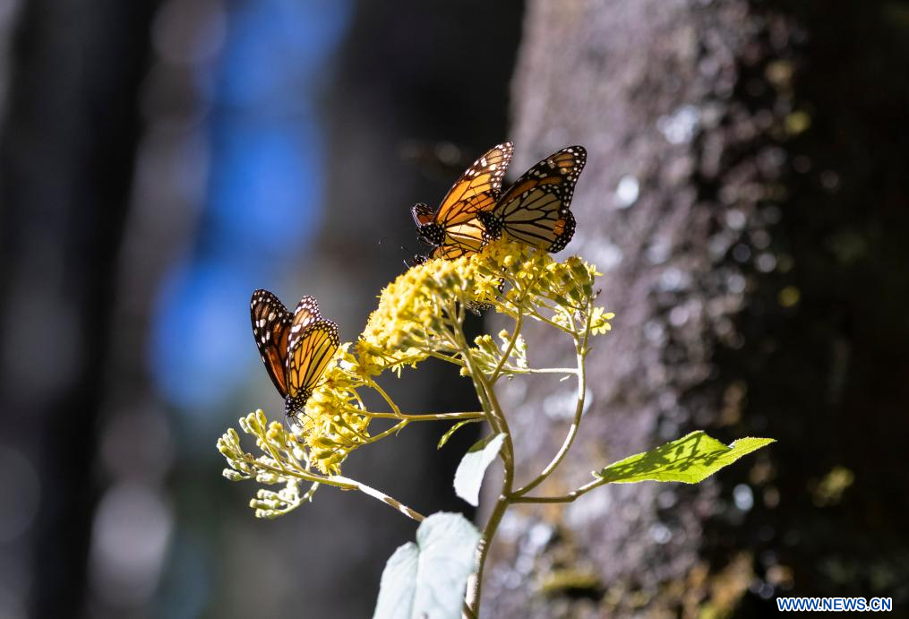 CIUDAD DE MEXICO, 13 enero, 2024 (Xinhua) -- Imagen del 12 de enero de 2024 de mariposas monarca en un santuario de la mariposa monarca, en Temascaltepec, México. (Xinhua/Li Mengxin)