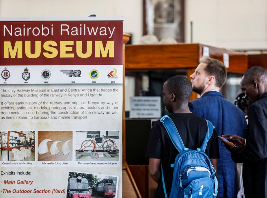A la entrada del Museo del Ferrocarril de Nairobi, la centenaria línea ferroviaria, inicialmente nombrada como Ferrocarril Uganda por su estación de destino, se desplegaba sobre un mapa de África Oriental.