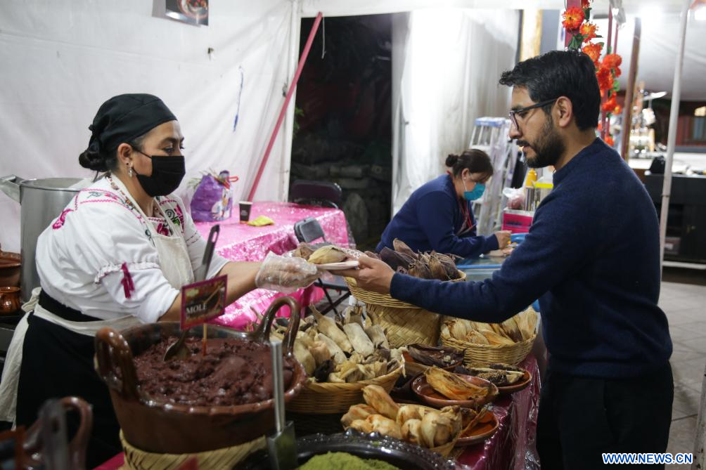 CIUDAD DE MEXICO, 31 enero, 2024 (Xinhua) -- Imagen del 30 de enero de 2024 de una mujer mostrando tamales durante la XXX Feria del Tamal en el marco de la celebración del Día de la Candelaria en el Museo Nacional de Culturas Populares, en la Ciudad de México, capital de México. (Xinhua/Francisco Cañedo)
