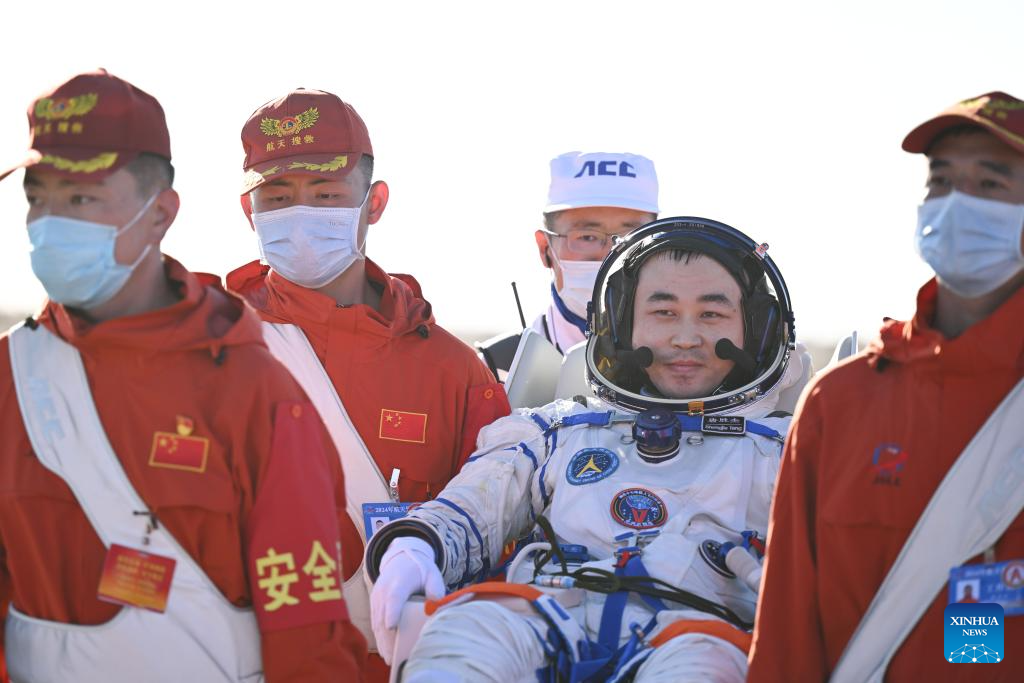 JIUQUAN, 30 abr (Xinhua) -- Los tres astronautas de la misión Shenzhou-17, Tang Hongbo, Tang Shengjie y Jiang Xinlin, salieron ya de la cápsula de retorno que tocó tierra hoy martes en el sitio de aterrizaje de Dongfeng, en la región autónoma de Mongolia Interior, en el norte de China.