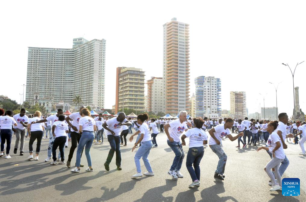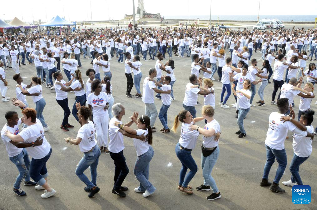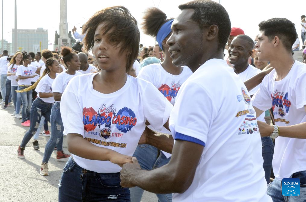 LA HABANA, 5 may (Xinhua) -- Varios miles de cubanos bailaron hoy a lo largo y ancho del país caribeño para conquistar un nuevo récord mundial de baile al unísono de Ruedas del estilo Casino y de participantes en esa danza en parejas.
