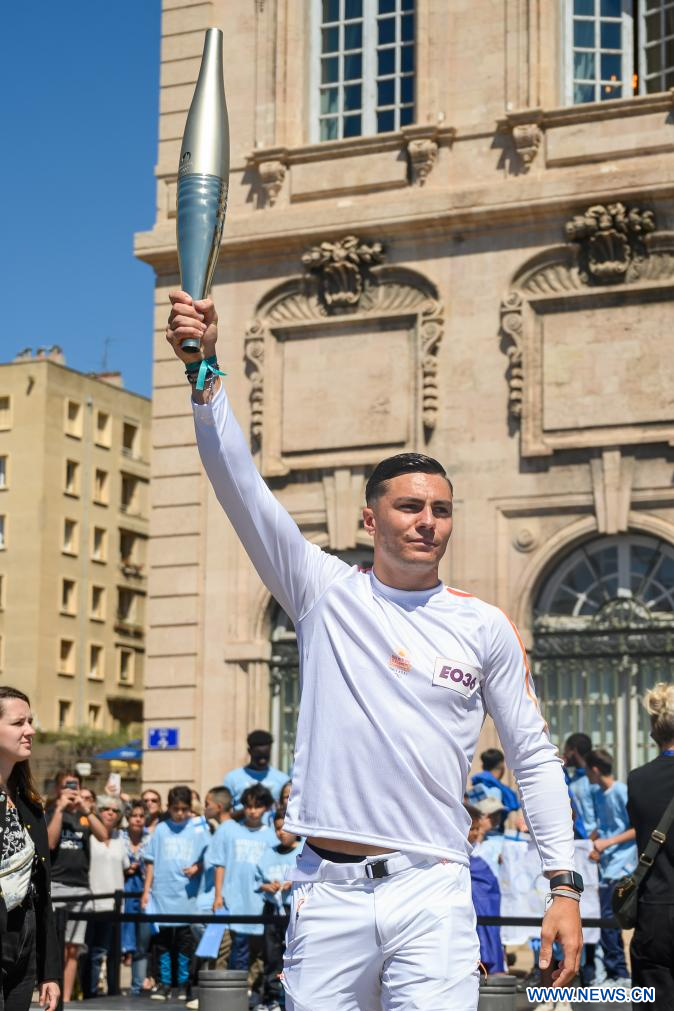MARSELLA, 9 mayo, 2024 (Xinhua) -- Tony Estanguet, presidente del Comité Organizador de los Juegos Olímpicos y Paralímpicos de París 2024, es visto durante el relevo de la antorcha olímpica de París 2024, en Marsella, Francia, el 9 de mayo de 2024. (Xinhua/Julien Mattia)