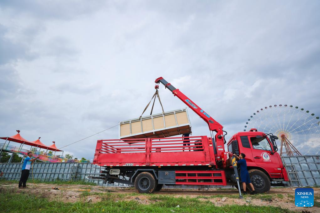 HAIKOU, 16 mayo, 2024 (Xinhua) -- Imagen del 15 de mayo de 2024 de la caja de transporte personalizada para la ballena piloto de aleta corta "Haitang" siendo izada cerca de la piscina de rescate del Centro de Conservación Animal Haichang de Sanya, en Sanya, en la provincia de Hainan, en el sur de China. La recientemente rescatada ballena piloto de aleta corta "Haitang" se recupera bien en Sanya y se espera que sea liberada en el océano en mayo con base en las condiciones climáticas y del mar, según los expertos. (Xinhua/Zhang Liyun)