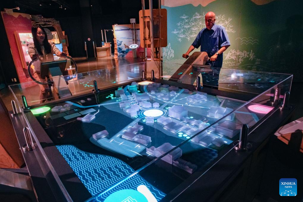 VANCOUVER, 31 mayo, 2024 (Xinhua) -- Imagen del 30 de mayo de 2024 de personas usando generadores de pedales para producir energía para iluminar una maqueta de un paisaje urbano durante una vista previa para los medios de comunicación de la exposición "La Tierra Importa: Repensando el Futuro" en el Mundo de la Ciencia, en Vancouver, Columbia Británica, Canadá. "La Tierra Importa: Repensando el Futuro" es la exposición más reciente en el Mundo de la Ciencia, en Vancouver, donde los visitantes pueden explorar los cambios del planeta a través de exhibiciones inmersivas e interactivas sobre la biodiversidad, el cambio climático y la sostenibilidad. (Xinhua/Liang Sen)