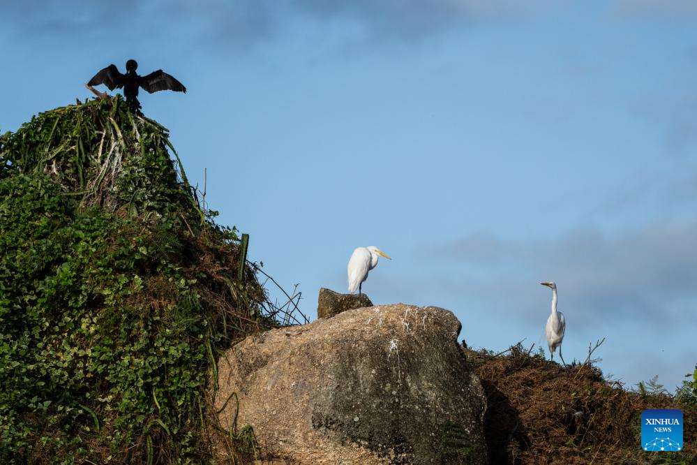 RIO DE JANEIRO, 5 junio, 2024 (Xinhua) -- Imagen del 31 de mayo de 2024 de aves marinas vistas en el Area Ambiental Protegida de Cairucu, en el estado de Río de Janeiro, Brasil. Paraty e Ilha Grande es una propiedad en serie que consta de seis partes que incluyen el Centro Histórico de Paraty, Morro da Vila Velha, el Parque Nacional Serra da Bocaina, el Parque Estatal Ilha Grande, la Reserva Biológica Praia do Sul y el Area Ambiental Protegida de Cairucu. En 2019, Paraty e Ilha Grande fueron inscritas en la Lista del Patrimonio Mundial de la UNESCO como un sitio de patrimonio cultural y natural mixto. (Xinhua/Wang Tiancong)