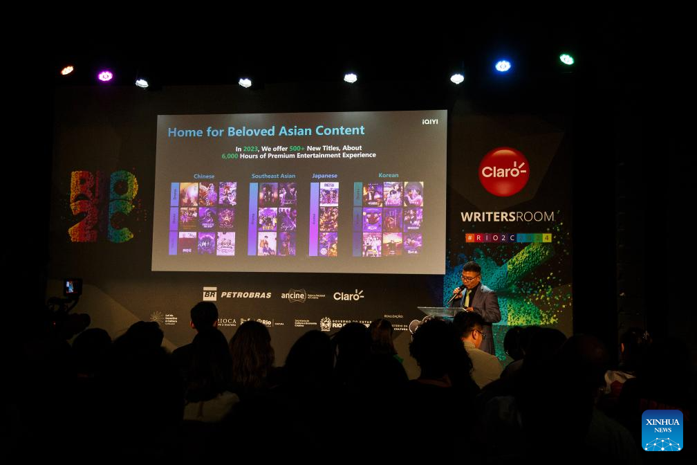 RIO DE JANEIRO, 6 junio, 2024 (Xinhua) -- Leo Geng (d-atrás), vicepresidente senior del servicio chino de transmisión de video iQIYI, Inc., habla durante el Foro "Viendo a China-Cultura y Posibilidades de Negocio" en la RIO2C 2024 (Conferencia Creativa de Río) llevada a cabo en la Ciudad de las Artes, en Río de Janeiro, Brasil, el 6 de junio de 2024. (Xinhua/Claudia Martini)