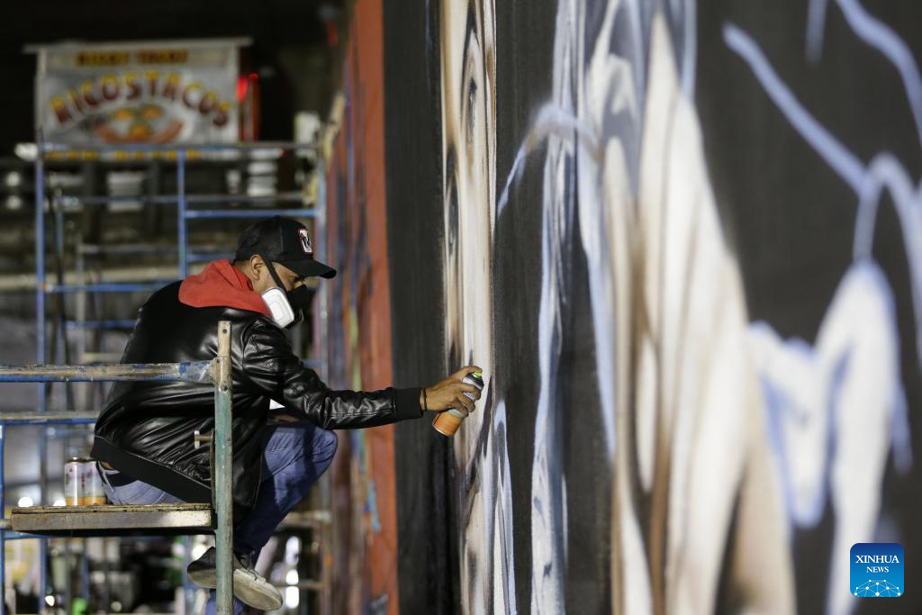 CIUDAD DE MEXICO, 4 julio, 2024 (Xinhua) -- Imagen del 3 de julio de 2024 de un artista urbano realizando un mural alusivo a deportistas mexicanos que participarán en los Juegos Olímpicos de París 2024, en la Ciudad de México, capital de México. (Xinhua/Francisco Cañedo)