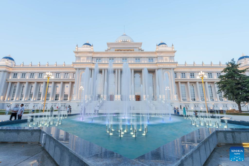 DUSAMBE, 5 julio, 2024 (Xinhua) -- Imagen del 29 de junio de 2024 de personas pasando su tiempo libre frente al salón del Parlamento, en Dusambé, Tayikistán. Tayikistán está situado en el sureste de Asia Central, con una zona montañosa que supera el 90 por ciento de su superficie total. Dusambé es la capital de Tayikistán y el centro económico y cultural del país. (Xinhua/Shen Hong)
