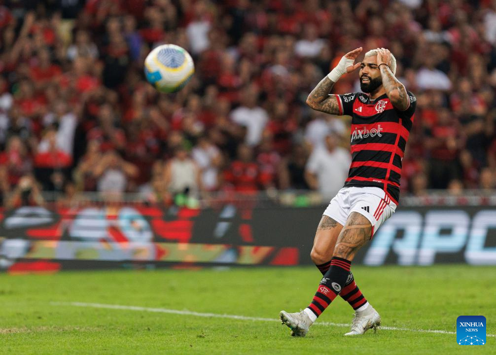 RIO DE JANEIRO, 12 julio, 2024 (Xinhua) -- Imagen del 11 de julio de 2024 del jugador Gabi, de Flamengo, reaccionando durante el partido correspondiente a la jornada 16 del Campeonato Brasileño Serie A, ante Fortaleza, celebrado en el Estadio Maracaná, en Río de Janeiro, Brasil. (Xinhua/Claudia Martini)