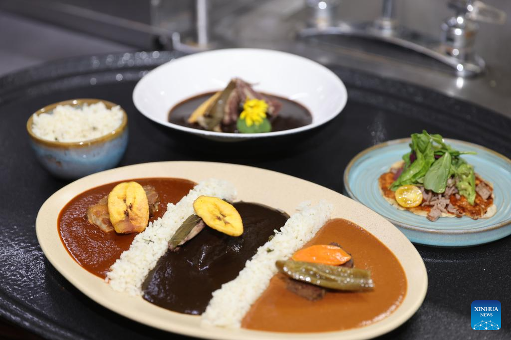 OAXACA, 24 julio, 2024 (Xinhua) -- Imagen del 23 de julio de 2024 de comida tradicional de mole en un restaurante, en la ciudad de Oaxaca, capital del estado de Oaxaca, México. La cocina oaxaqueña es una cocina regional de México, centrada en la ciudad de Oaxaca. La comida tradicional como el mole, chapulines, y la bebida mezcal son populares tanto entre la población local como entre los turistas. (Xinhua/Li Mengxin)