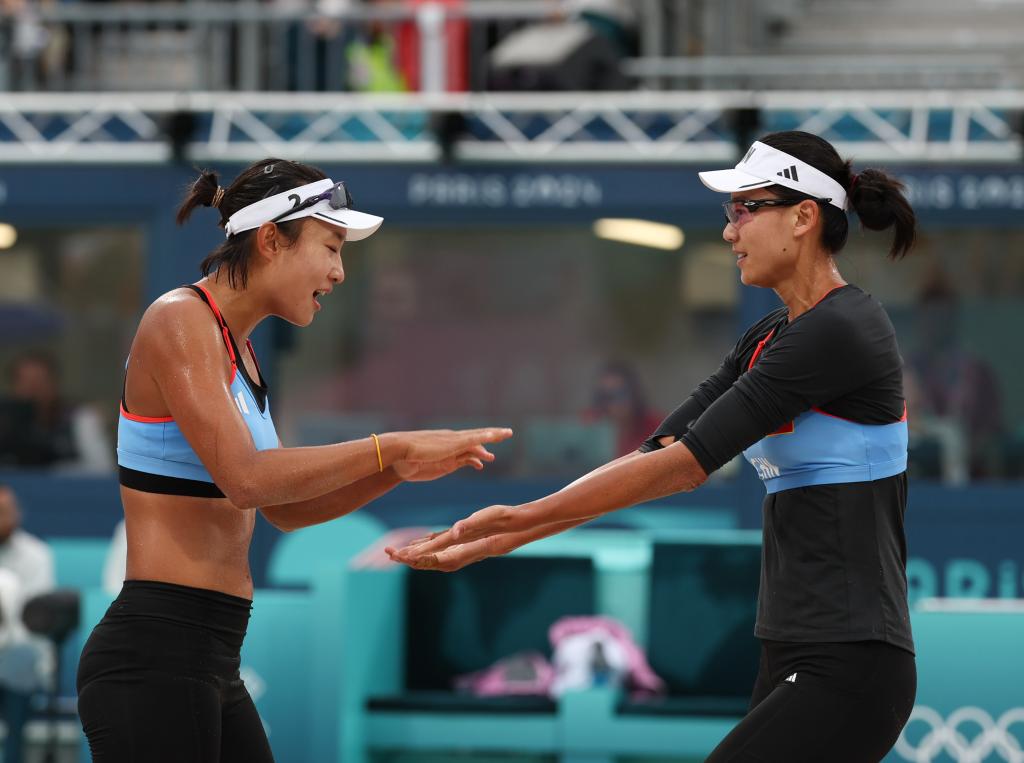 PARIS, 27 julio, 2024 (Xinhua) -- Zheng Siwei (arriba)/Huang Yaqiong de China festejan al término del partido de dobles mixtos de la fase de grupos de bádminton ante Thom Gicquel/Delphine Delrue de Francia en los Juegos Olímpicos de París 2024, en París, Francia, el 27 de julio de 2024. (Xinhua/Chen Bin)