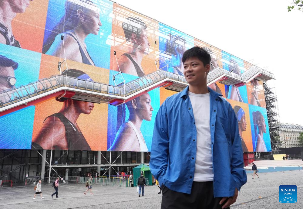 PARIS, 27 julio, 2024 (Xinhua) -- El velocista estrella de China, Su Bingtian, posa para una fotografía durante su visita al Centro Pompidou, en París, Francia, el 27 de julio de 2024. (Xinhua/Meng Yongmin)
