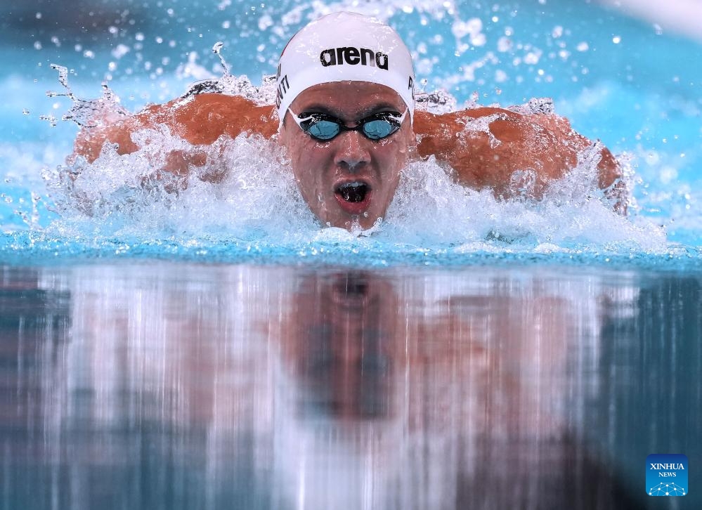 PARIS, 30 julio, 2024 (Xinhua) -- Alberto Razzetti de Italia compite durante la semifinal de 200m mariposa masculino de natación en los Juegos Olímpicos de París 2024, en París, Francia, el 30 de julio 2024. (Xinhua/Du Yu)