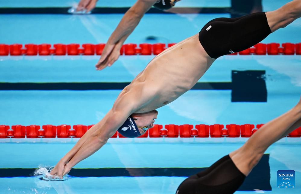 PARIS, 30 julio, 2024 (Xinhua) -- Daniel Wiffen de Irlanda compite durante la final de 800m estilo libre masculino de natación en los Juegos Olímpicos de París 2024, en París, Francia, el 30 de julio 2024. (Xinhua/Luo Yuan)