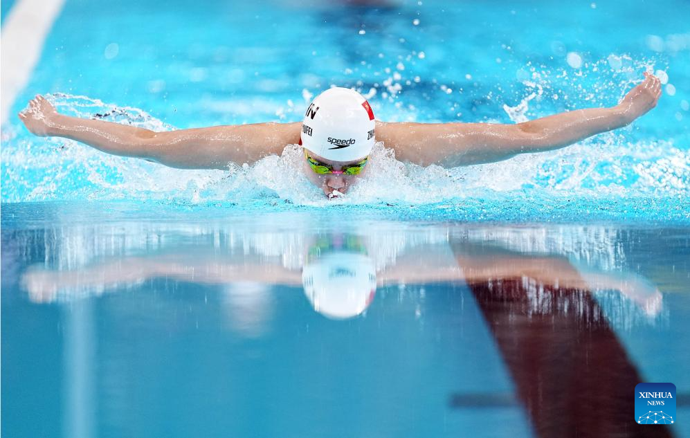PARIS, 1 agosto, 2024 (Xinhua) -- Zhang Yufei de China compite durante la final de 200m mariposa femeninos de natación de los Juegos Olímpicos de París 2024, en París, Francia, el 1 de agosto de 2024. (Xinhua/Du Yu)