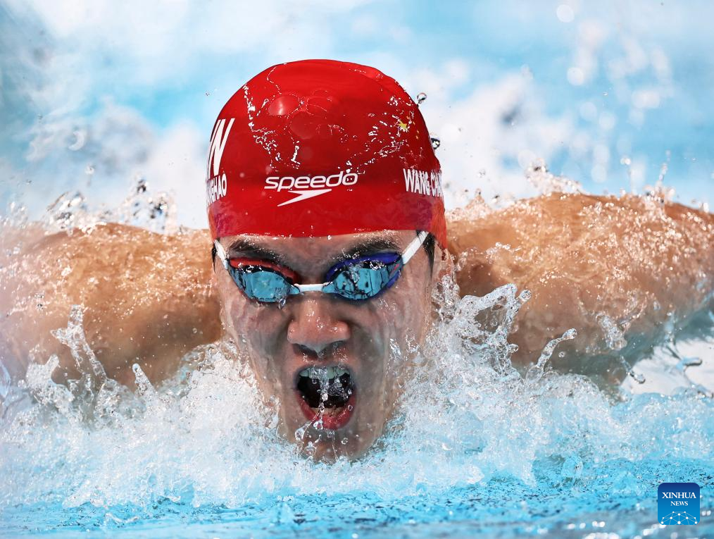 PARIS, 2 agosto, 2024 (Xinhua) -- Wang Changhao de China compite durante las series de 100m mariposa masculino de natación en los Juegos Olímpicos de París 2024, en París, Francia, el 2 de agosto de 2024. (Xinhua/Luo Yuan)