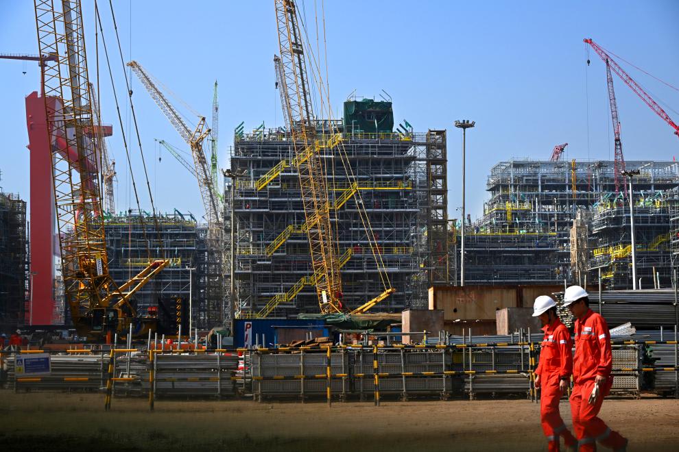 SINGAPUR, 17 agosto, 2024 (Xinhua) -- Concursantes compiten en una competencia de danza del león en el Resorts World Sentosa de Singapur, el 17 de agosto de 2024. (Xinhua/Then Chih Wey)