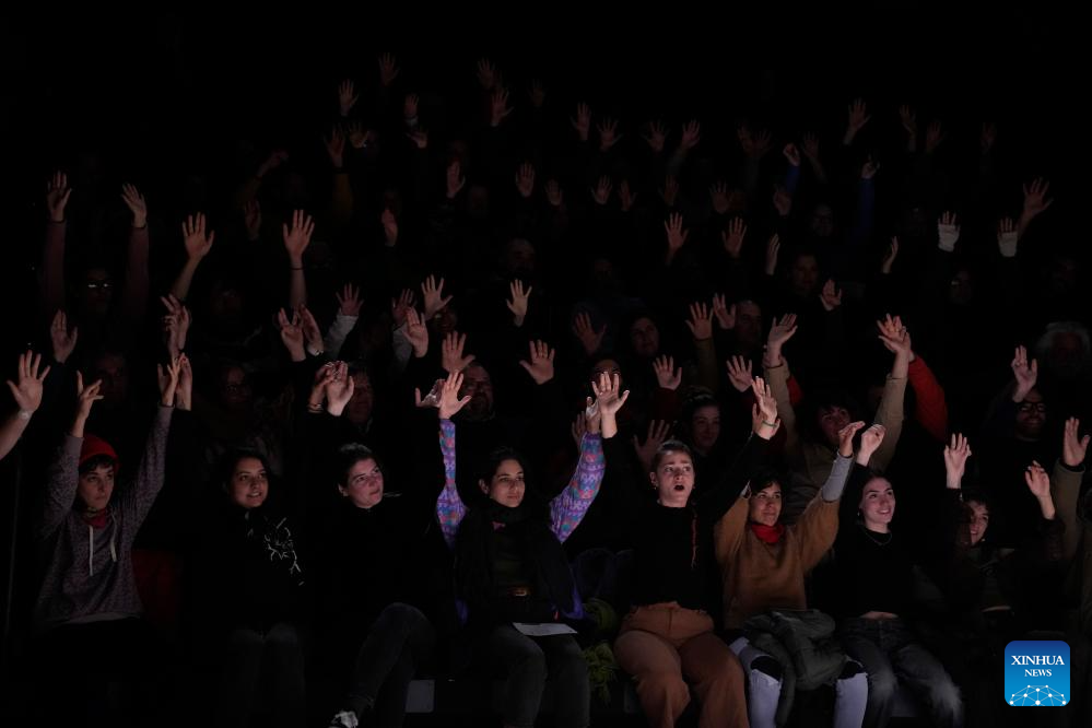 MONTEVIDEO, 20 agosto, 2024 (Xinhua) -- Imagen del 19 de agosto de 2024 de espectadores observando la función de circo "Reclaim" de la compañía "Theatre d'Un Jour" de Bélgica en el marco del Festival Internacional de Artes Escénicas, en el Teatro Solís, en Montevideo, capital de Uruguay. (Xinhua/Nicolás Celaya)