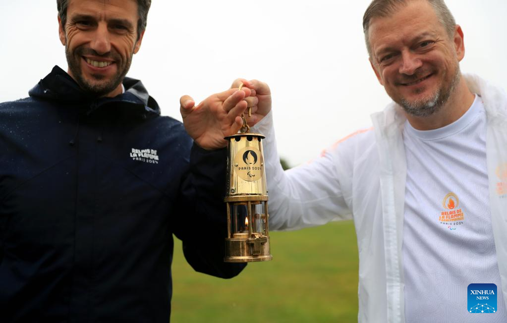 STOKE MANDEVILLE, 24 agosto, 2024 (Xinhua) -- Tony Estanguet, presidente del Comité Organizador de los Juegos Olímpicos y Paralímpicos de París 2024, sostiene la linterna de la flama durante la Ceremonia de Encendido de la Antorcha Paralímpica para los Juegos Paralímpicos de París 2024, en Stoke Mandeville, Reino Unido, el 24 de agosto de 2024. (Xinhua/Li Ying)