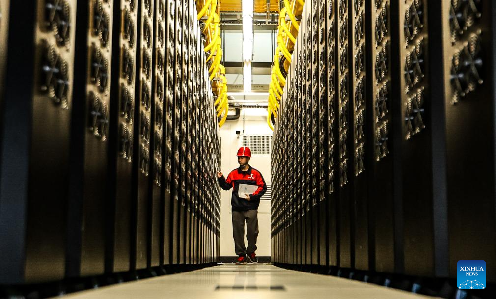 GUIYANG, 30 agosto, 2024 (Xinhua) -- Imagen del 29 de agosto de 2024 de un empleado trabajando en la sala de datos de un centro de supercomputación, en la Nueva Area de Gui'an, en la provincia de Guizhou, en el suroeste de China. A menudo denominada como el centro de macrodatos de China, la provincia montañosa de Guizhou es la primera zona piloto integral de macrodatos de China. Promueve esta industria como columna vertebral de su desarrollo social y económico de alta calidad. Actualmente, 47 grandes centros de datos están en construcción u operativos en esta provincia. (Xinhua/Liu Xu)