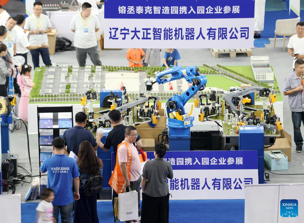 SHENYANG, 1 septiembre, 2024 (Xinhua) -- Personas visitan la 22ª Exposición Internacional de Fabricación de Equipos de China, en Shenyang, en la provincia de Liaoning, en el noreste de China, el 1 de septiembre de 2024. La exposición comenzó el domingo en el Centro Internacional de Exposiciones de Shenyang y durará hasta el 4 de septiembre. (Xinhua/Li Gang)