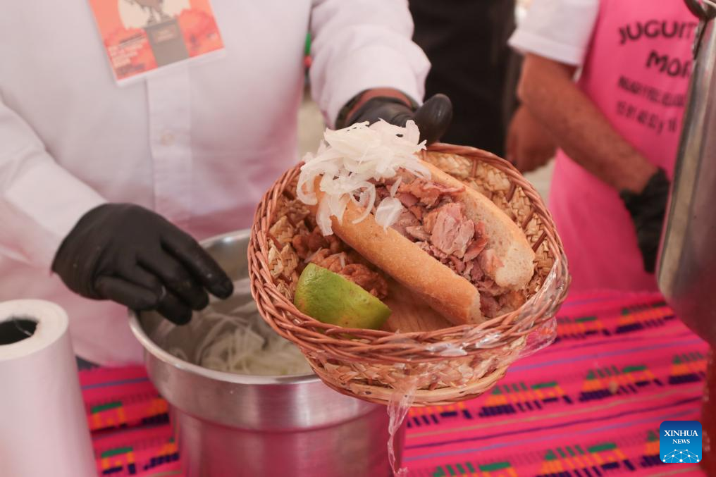 GUADALAJARA, México, 9 sep (Xinhua) -- El Paseo Fray Antonio Alcalde, ubicado a un costado de la emblemática Plaza de Armas de la ciudad de Guadalajara, en el estado mexicano de Jalisco (oeste), se llenó de aromas irresistibles y sabores tradicionales el domingo con la tercera edición del Día Municipal de la Torta Ahogada.