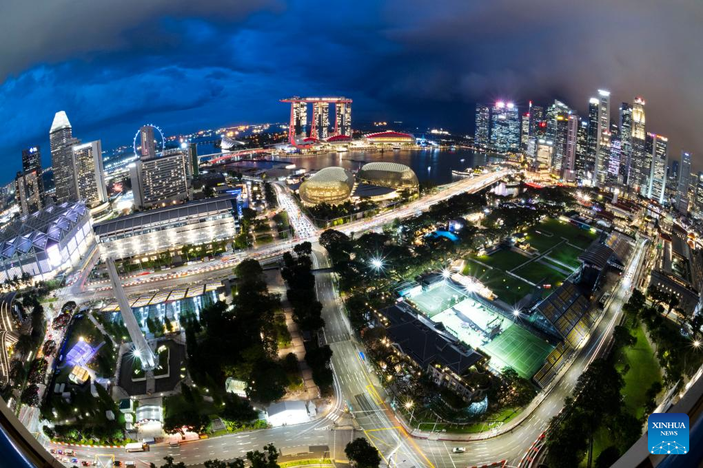 SINGAPUR, 17 septiembre, 2024 (Xinhua) -- Imagen del 17 de septiembre de 2024 de la vista general del circuito callejero de Marina Bay para el próximo Gran Premio de Singapur de F1, en Singapur. (Xinhua/Then Chih Wey)