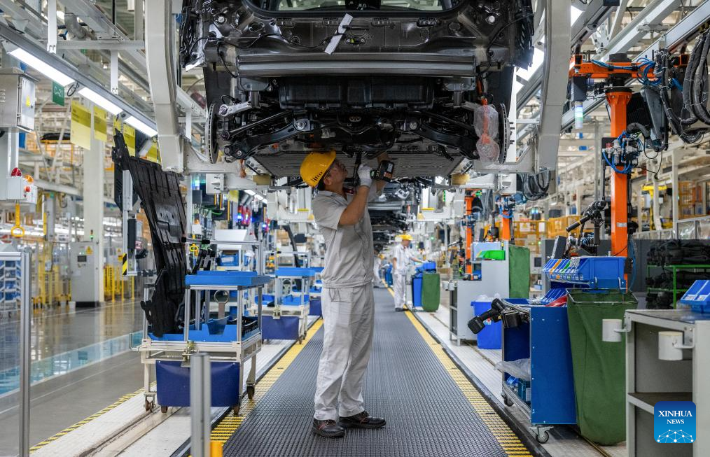 WUHAN, 18 septiembre, 2024 (Xinhua) -- Imagen del 6 de septiembre de 2024 de un trabajador revisando la calidad de un vehículo nuevo en una línea de ensamblaje de Dongfeng Motor Corporation, en Wuhan, en la provincia de Hubei, en el centro de China. (Xinhua/Wu Zhizun)