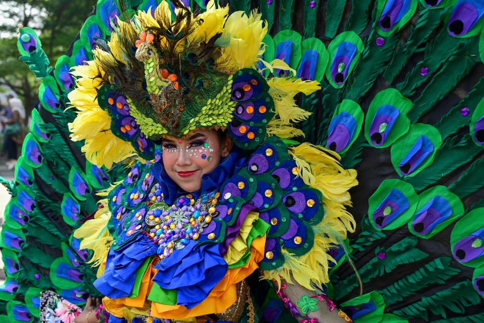 CIUDAD DE PASAY, 3 octubre, 2024 (Xinhua) -- Candidatas portando coloridos trajes posan en el escenario durante el concurso de trajes nacionales del Miss Asia Pacífico Internacional 2024, en la ciudad de Pasay, Filipinas, el 3 de octubre de 2024. (Xinhua/Rouelle Umali)