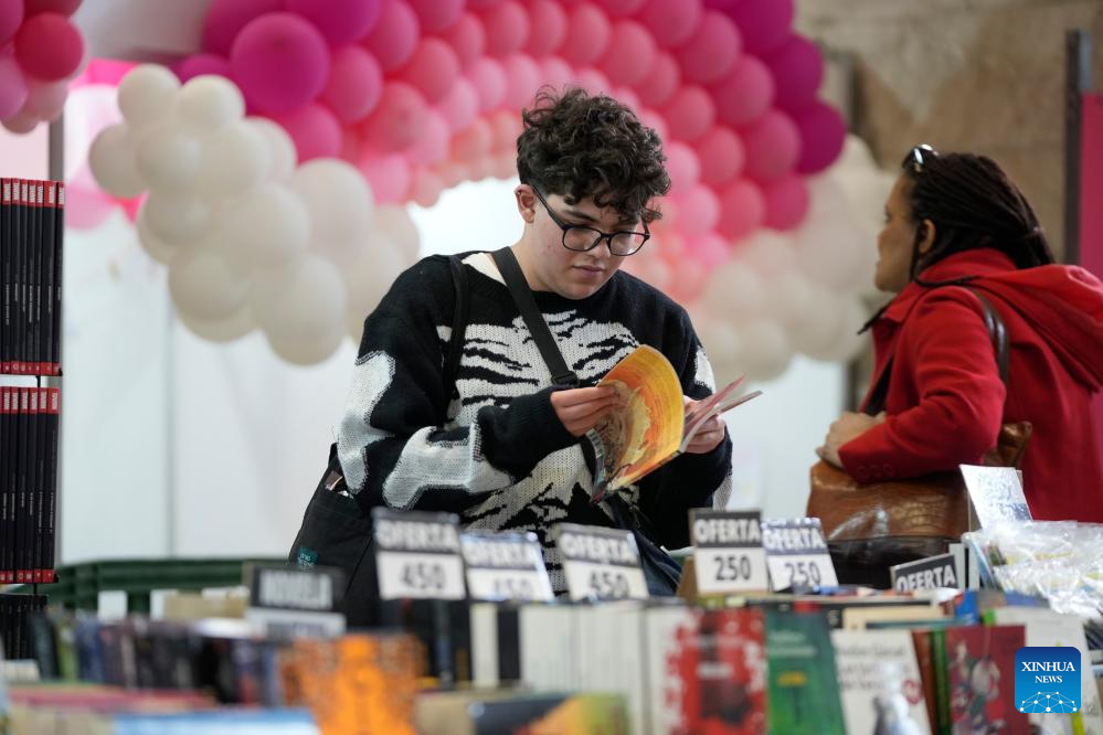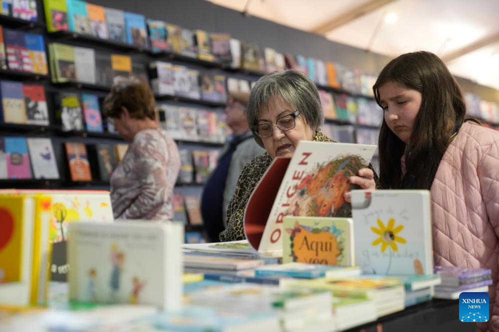 MONTEVIDEO, 3 octubre, 2024 (Xinhua) -- Visitantes observan un libro en un estand durante la 46ª Feria Internacional del Libro de Montevideo, en Montevideo, capital de Uruguay, el 3 de octubre de 2024. (Xinhua/Nicolás Celaya)