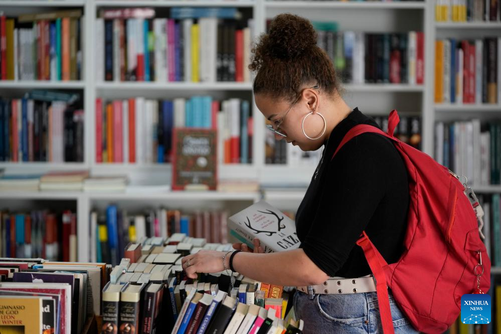 MONTEVIDEO, 3 octubre, 2024 (Xinhua) -- Visitantes observan libros en un estand durante la 46ª Feria Internacional del Libro de Montevideo, en Montevideo, capital de Uruguay, el 3 de octubre de 2024. (Xinhua/Nicolás Celaya)