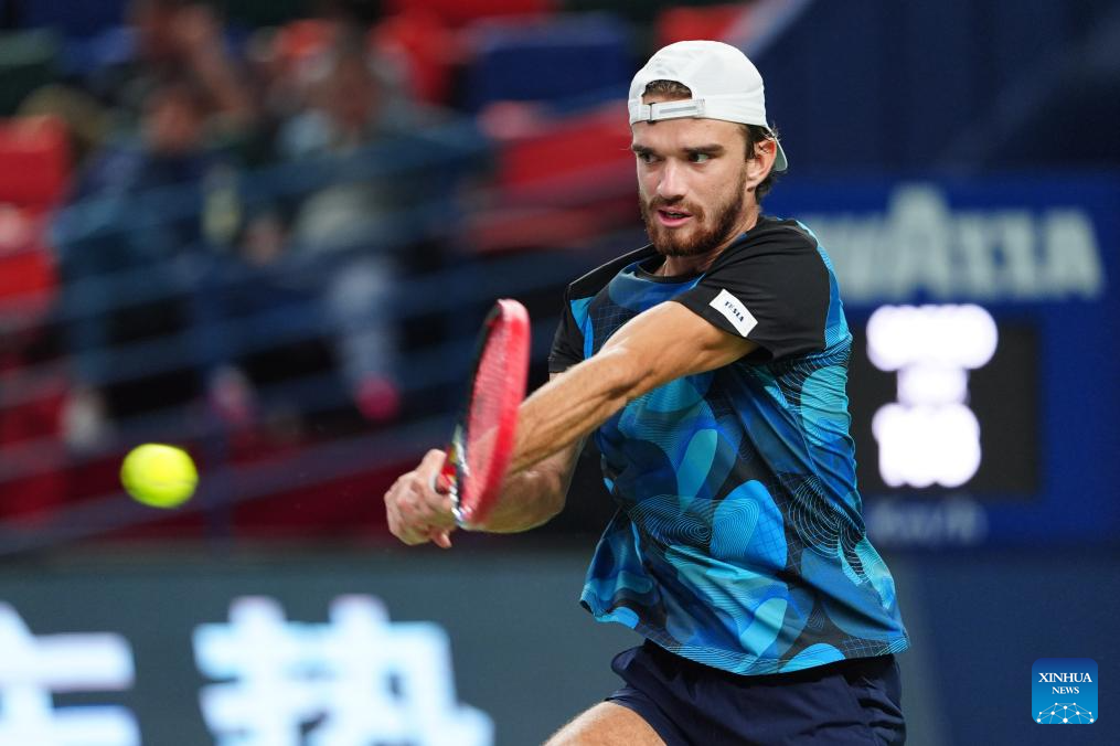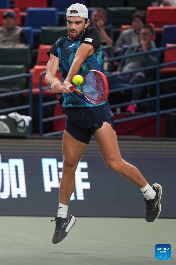 SHANGHAI, 10 octubre, 2024 (Xinhua) -- Tomas Machac devuelve la pelota durante el partido de cuartos de final de individuales masculinos entre Carlos Alcaraz, de España, y Tomas Machac, de República Checa, en el torneo de tenis Masters de Shanghai en el ATP World Tour, en Shanghai, en el este de China, el 10 de octubre de 2024. (Xinhua/Xu Yanan)