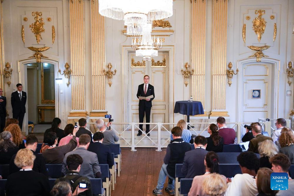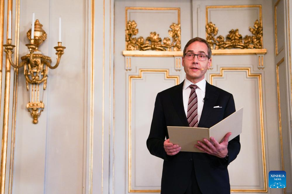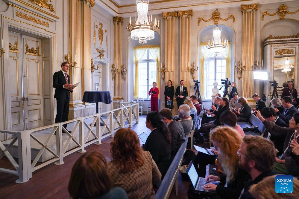 ESTOCOLMO, 10 octubre, 2024 (Xinhua) -- El secretario permanente de la Academia Sueca, Mats Malm, anuncia a la galardonada con el Premio Nobel de Literatura 2024, en Estocolmo, Suecia, el 10 de octubre de 2024. La autora surcoreana Han Kang ha sido galardonada con el Premio Nobel de Literatura 2024, anunció el jueves la Academia Sueca. (Xinhua/Peng Ziyang)