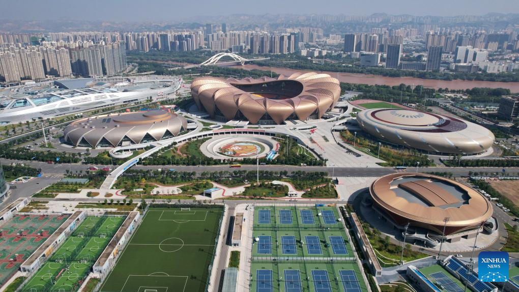 LANZHOU, 18 octubre, 2024 (Xinhua) -- Vista aérea tomada con un dron del 26 de septiembre de 2024 del Centro Olímpico de Lanzhou a lo largo del río Amarillo, en Lanzhou, en la provincia de Gansu, en el noroeste de China. Lanzhou, alguna vez un centro de transporte, una fortaleza militar y una importante área comercial a lo largo de la antigua Ruta de la Seda, es la única capital provincial por donde pasa el río Amarillo. La sección de Lanzhou del curso principal del río Amarillo tiene 150,7 kilómetros de longitud, de los cuales 47,5 kilómetros fluyen a través del área urbana. El río Amarillo es también una importante fuente de agua potable en Lanzhou. Gracias a los continuos esfuerzos, el medio ambiente ecológico en ambos lados de la sección de Lanzhou del río Amarillo esta constantemente mejorando. (Xinhua/Chen Bin)