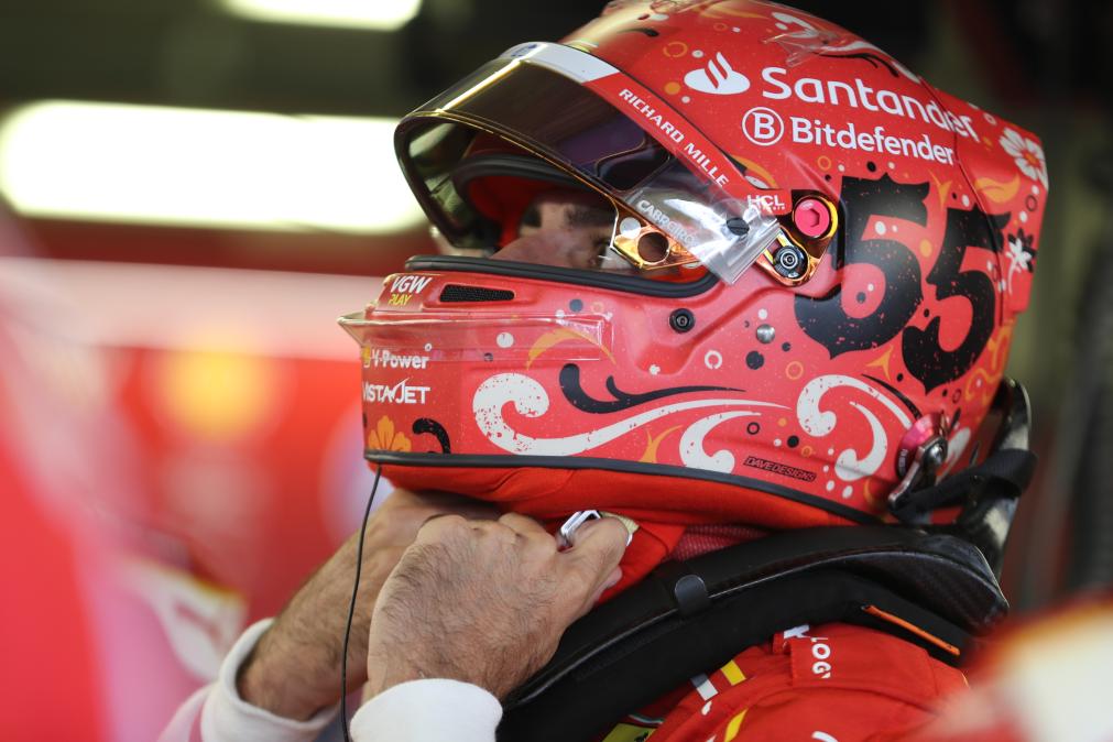 CIUDAD DE MEXICO, 28 octubre, 2024 (Xinhua) -- Imagen del 27 de octubre de 2024 del piloto español de la escudería Ferrari, Carlos Sainz, reaccionando previo a la carrera del Gran Premio de México de Fórmula Uno en el Autódromo Hermanos Rodríguez, en la Ciudad de México, capital de México. (Xinhua/Li Mengxin)