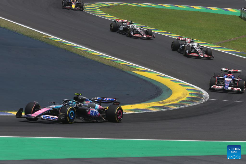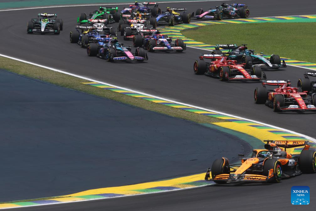 SAO PAULO, 2 noviembre, 2024 (Xinhua) -- Pilotos compiten durante la carrera esprint del Gran Premio de Brasil de Fórmula 1 en el Autódromo José Carlos Pace, en Sao Paulo, Brasil, el 2 de noviembre de 2024. (Xinhua/Rahel Patrasso)
