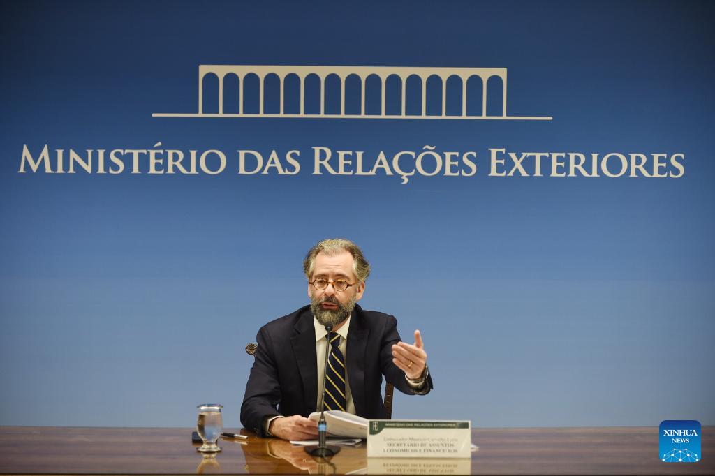 BRASILIA, 8 noviembre, 2024 (Xinhua) -- El embajador, Mauricio Lyrio, representante de Brasil ante el Grupo de los Veinte (G20), habla durante una conferencia de prensa en el Palacio de Itamaraty, en Brasilia, Brasil, el 8 de noviembre de 2024. La Cumbre de Líderes del G20, que tendrá lugar en la ciudad brasileña de Río de Janeiro los días 18 y de 19 de noviembre, lanzará la Alianza Global contra el Hambre y la Pobreza, anunció el viernes Lyrio, quien agregó que esta iniciativa cuenta con un amplio consenso entre los miembros y con numerosos interesados en unirse. (Xinhua/Lucio Tavora)
