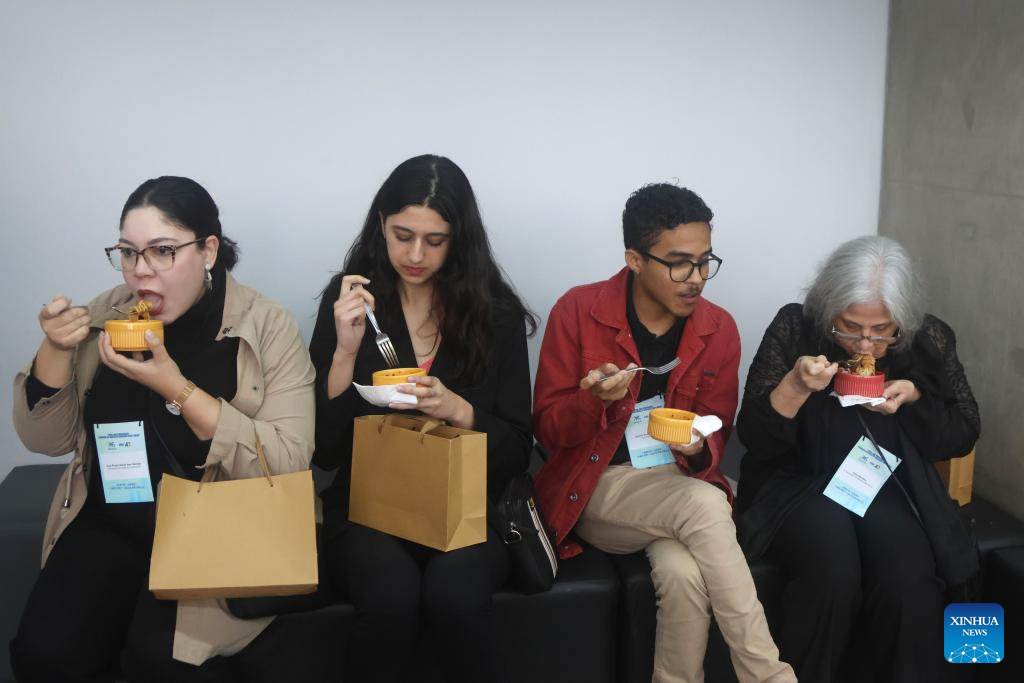 SAO PAULO, 8 noviembre, 2024 (Xinhua) -- Personas degustan una pasta tradicional de la ciudad china de Chongqing durante el evento "China, Una Oportunidad: Promoción Global de las Marcas de Chongqing para Brasil", en Sao Paulo, Brasil, el 8 de noviembre de 2024. (Xinhua/Rahel Patrasso)