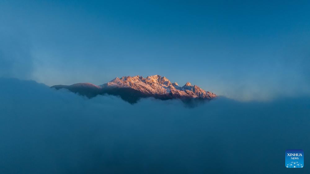 LIJIANG, 11 noviembre, 2024 (Xinhua) -- Vista aérea tomada con un dron el 9 de noviembre de 2024 de la luz del sol brillando sobre la montaña nevada de Yulong, en Lijiang, en la provincia de Yunnan, en el suroeste de China. Con el objetivo de construir una ciudad turística de fama mundial, Lijiang ha estado mejorando el servicio en sus sitios escénicos como la ciudad antigua de Lijiang y la montaña nevada de Yulong, en un esfuerzo por promover el desarrollo de alta calidad de su mercado de turismo cultural. De acuerdo con las estadísticas, la ciudad ha recibido 68,663 millones de turistas en los tres primeros trimestres de 2024, un aumento del 20,71 por ciento interanual. (Xinhua/Hu Chao)