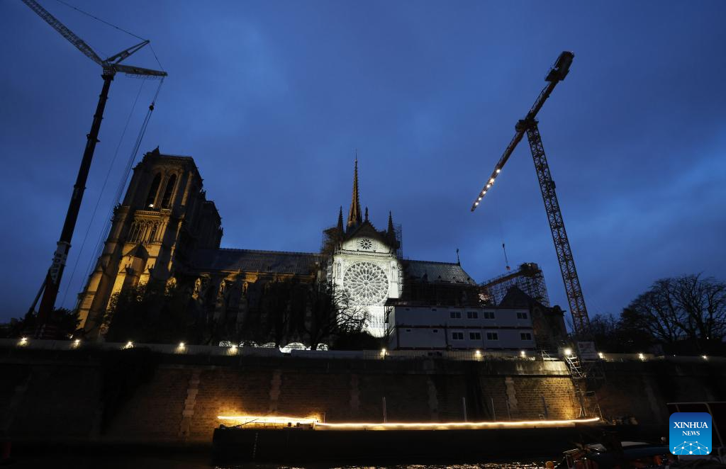 PARIS, 5 diciembre, 2024 (Xinhua) -- Imagen del 4 de diciembre de 2024 de una vista de la Catedral de Notre Dame, en París, Francia. Las ceremonias de reapertura de la Catedral de Notre Dame, dañada por un gran incendio en 2019, se llevarán a cabo el 7 y 8 de diciembre. (Xinhua/Gao Jing)