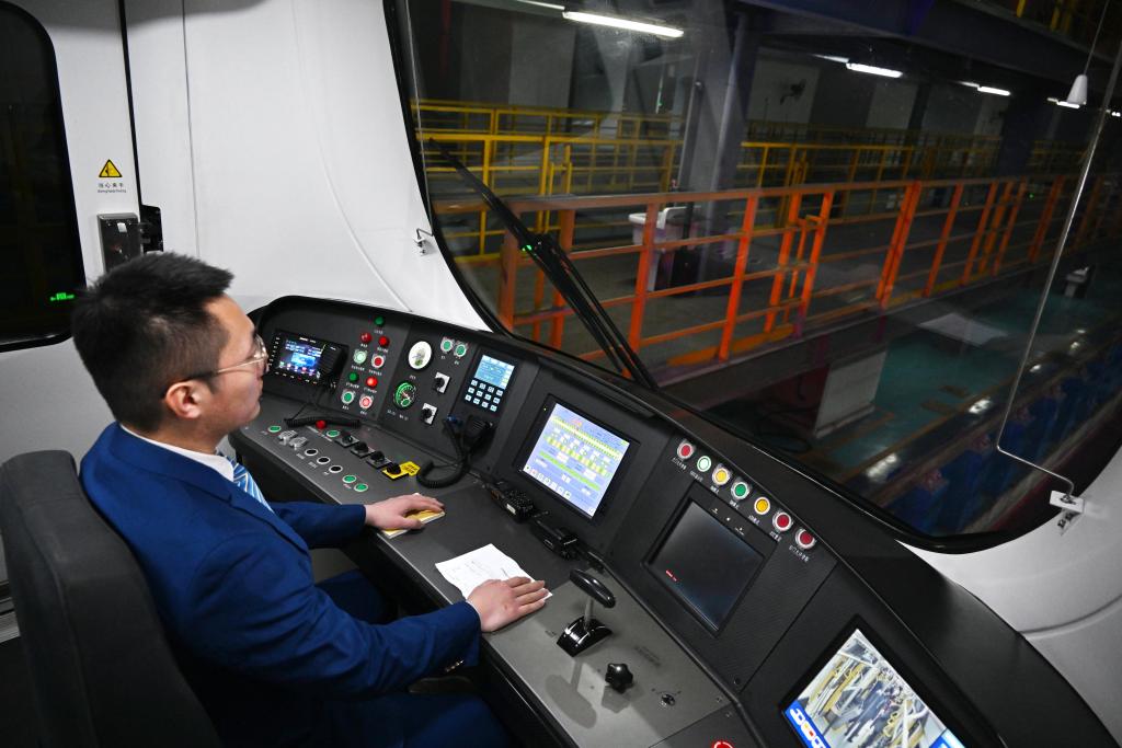 QINGDAO, 10 enero, 2025 (Xinhua) -- Un conductor es visto en la cabina de conducción de un tren de metro CETROVO 1.0 previo a su puesta en marcha, en Qingdao, en la provincia de Shandong, en el este de China, el 10 de enero de 2025. El vagón de metro CETROVO 1.0 comenzó su operación en la Línea 1 del Metro de Qingdao el viernes. Con un cuerpo y un marco compuestos de fibra de carbono, es más ligero y más eficiente energéticamente que el tren de metro tradicional. (Xinhua/Li Ziheng)