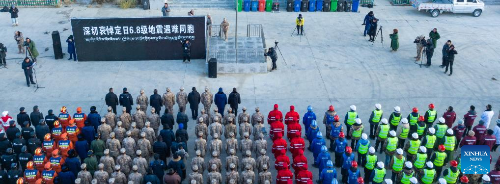 LHASA, 13 ene (Xinhua) -- Un servicio conmemorativo se llevó a cabo hoy lunes para recordar a las víctimas del terremoto de 6,8 grados de magnitud que sacudió la semana pasada el distrito de Dingri, en la región autónoma de Xizang, en el suroeste de China.