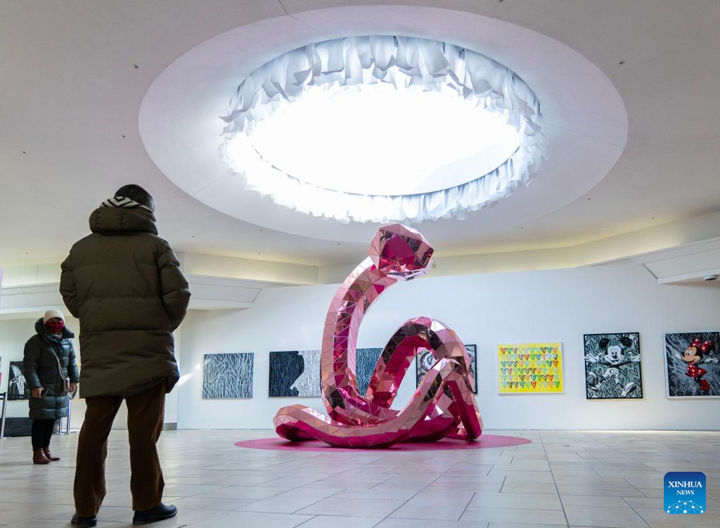 TORONTO, 28 enero, 2025 (Xinhua) -- Imagen del 27 de enero de 2025 de personas observando una instalación de serpientes en un centro comercial, en Toronto, Canadá. Los principales centros comerciales de Toronto han lanzado sus instalaciones de serpientes en celebración del próximo Año Nuevo Lunar, el Año de la Serpiente. (Xinhua/Zou Zheng)