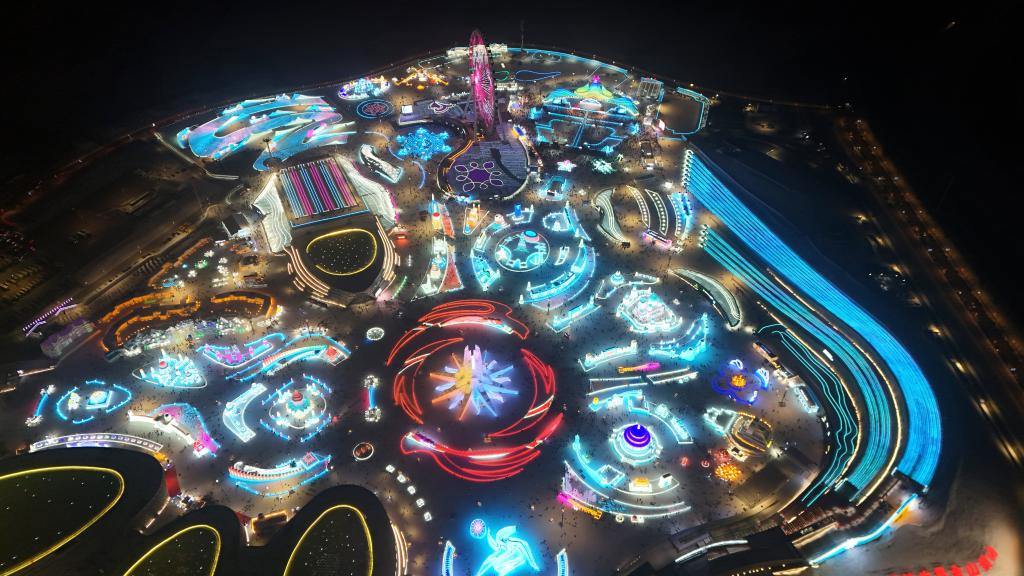 HARBIN, 30 enero, 2025 (Xinhua) -- Vista aérea del 26 de enero de 2025 del paisaje nocturno del Mundo de Hielo y Nieve de Harbin, en Harbin, en la provincia de Heilongjiang, en el noreste de China. Los IX Juegos Asiáticos de Invierno se llevarán a cabo en Harbin, capital de la provincia de Heilongjiang, en el noreste de China del 7 al 14 de febrero de 2025. Los juegos incluirán seis deportes, 11 disciplinas y 64 eventos. Los eventos de hielo se llevarán a cabo en Harbin, usando las sedes existentes de los Juegos Asiáticos de Invierno de 1996, mientras los eventos de nieve se llevarán a cabo en Yabuli, a 93 kilómetros de Harbin. Los juegos regionales se presentarán en China por tercera vez, después de Harbin en 1996 y la ciudad de Changchun, capital de la provincia de Jilin, en 2007. (Xinhua/Wang Song)