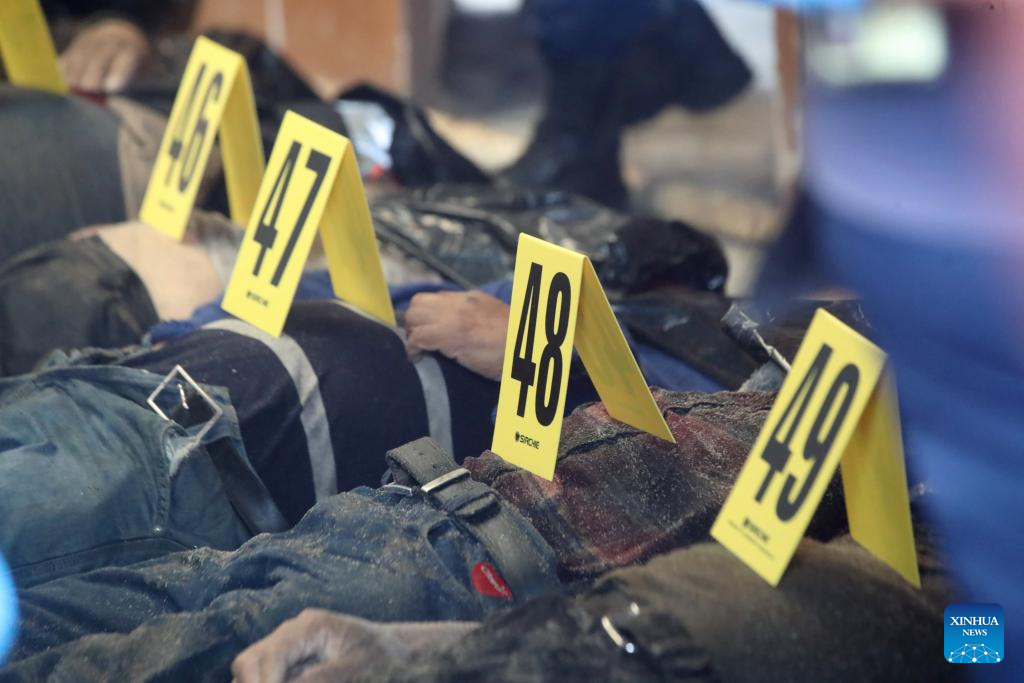 Cuerpos de las víctimas son numerados en el sitio de un accidente vial, en la Ciudad de Guatemala, capital de Guatemala, el 10 de febrero de 2025. Decenas de personas fallecidas dejó un trágico accidente vial ocurrido la madrugada del lunes en la capital de Guatemala, cuando un autobús extraurbano cayó a un barranco a orillas de la Calzada La Paz, mientras que varios heridos que fueron trasladados al Hospital General San Juan de Dios, reportan medios locales. (Xinhua/Str)