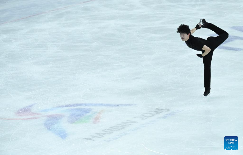 HARBIN, 11 febrero, 2025 (Xinhua) -- Chen Yudong, China, compite durante el programa corto de patinaje individual masculino del evento de patinaje artístico en los IX Juegos Asiáticos de Invierno, en Harbin, en la provincia de Heilongjiang, en el noreste de China, el 11 de febrero de 2025. (Xinhua/Cai Xiangxin)