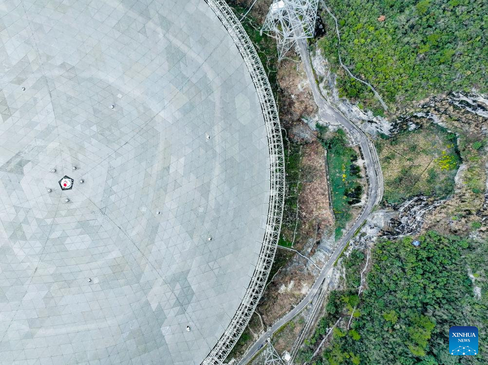 PINGTANG, 20 febrero, 2025 (Xinhua) -- Imagen del 18 de febrero de 2025 del Radiotelescopio Esférico de Apertura de Quinientos Metros (FAST, por sus siglas en inglés) de China en mantenimiento, en la provincia de Guizhou, en el suroeste de China. En los últimos años, Guizhou ha aprovechado sus recursos de investigación científica como el FAST para desarrollar viajes educativos por la ciencia, una opción favorable en toda China para las mentes inquisitivas que buscan embarcarse en un viaje de conocimiento y exploración en la ciencia. Por ejemplo, FAST, el radiotelescopio de un solo plato más grande del mundo, atrajo a 1.298 millones de visitantes para viajes educativos para la ciencia en 2024. (Xinhua/Liu Xu)