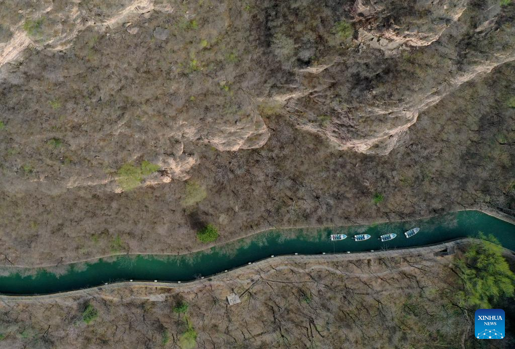 ZHENGZHOU, 3 abril, 2025 (Xinhua) -- Vista aérea tomada con un dron el 25 de marzo de 2025 del canal principal del Canal de Hongqi, en la ciudad de Linzhou, en la provincia de Henan, en el centro de China. El Canal de Hongqi, un proyecto de irrigación construido en las empinadas Montañas Taihang, es conocido como el "río artificial en el cielo". Este año marca el 60 aniversario de la terminación de su canal principal. (Xinhua/Hao Yuan)