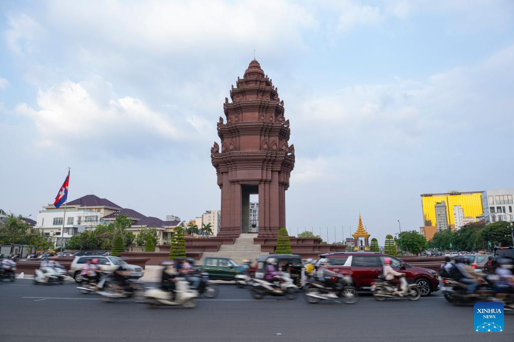 PHNOM PENH, 17 abril, 2025 (Xinhua) -- Imagen del 14 de marzo de 2025 del Monumento a la Independencia, en Phnom Penh, Camboya. Phnom Penh, capital del Reino de Camboya, está situada junto a la confluencia de los ríos Mekong y Tonle Sap. La coexistencia de la arquitectura tradicional y los edificios modernos dota a la ciudad de vida y vitalidad. (Xinhua/Cheong Kam Ka)